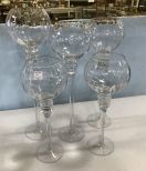 Five Tall Decorative Clear Glass Stems, hand blown, assorted sized, 22"h. Five Tall Decorative Clear Glass Stems, hand blown, assorted sized, 22"h.