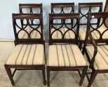 Six Duncan Phyfe Mahogany Dining Chairs, arm chair, five sides, clean fabric, 36"h. Six Duncan Phyfe Mahogany Dining Chairs, arm chair, five sides, clean fabric, 36"h.