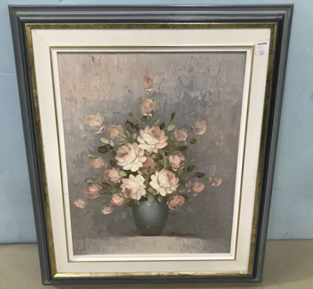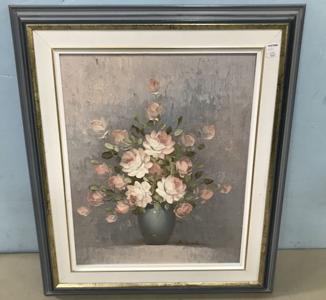 Signed Still Life Bouquet Painting, on canvas, signed lower right, framed, 27"h., 23"w. Signed Still Life Bouquet Painting, on canvas, signed lower right, framed, 27"h., 23"w.