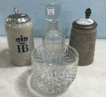 Heavy Glass Decanter with stopper 10"h., Poland Bowl and Two Collectible Beer Steins Heavy Glass Decanter with stopper 10"h., Poland Bowl and Two Collectible Beer Steins