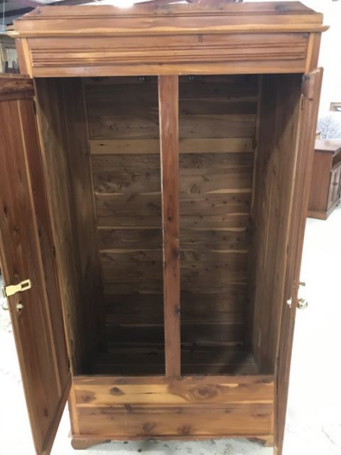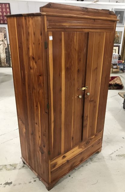 Vintage Double Door Cedar Wardrobe, light age wear, has latch, 66"h., 36"w., 21"d. Vintage Double Door Cedar Wardrobe, light age wear, has latch, 66"h., 36"w., 21"d.