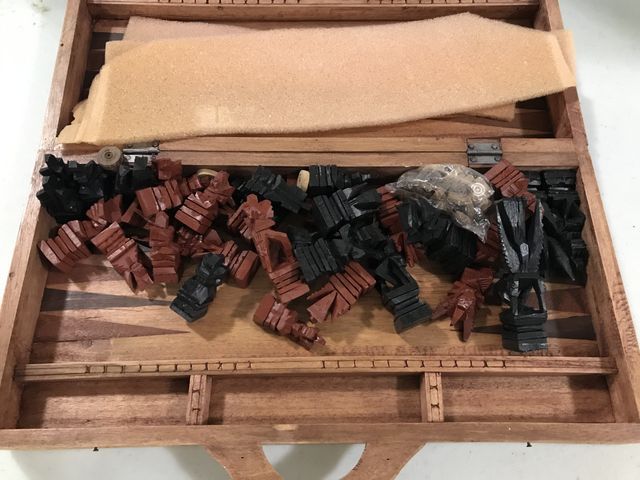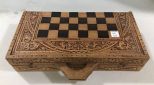649 Ornate Wood Carved Chess and Backgammon Set