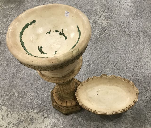 Vintage Plaster Pedestal and Planter Bowl, 29"h., 14"w. Vintage Plaster Pedestal and Planter Bowl, 29"h., 14"w.