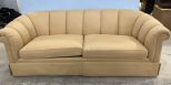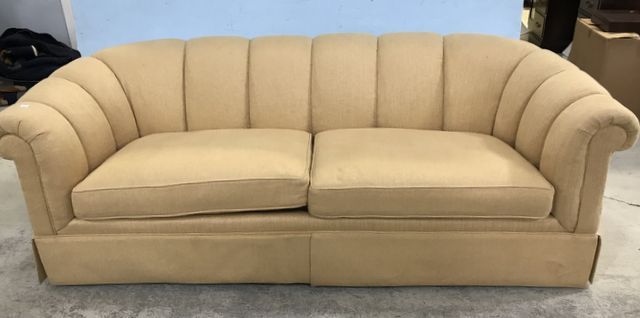 Gold Channel Back Sofa, two cushions, good condition, 30"h., 7'long. Gold Channel Back Sofa, two cushions, good condition, 30"h., 7'long.