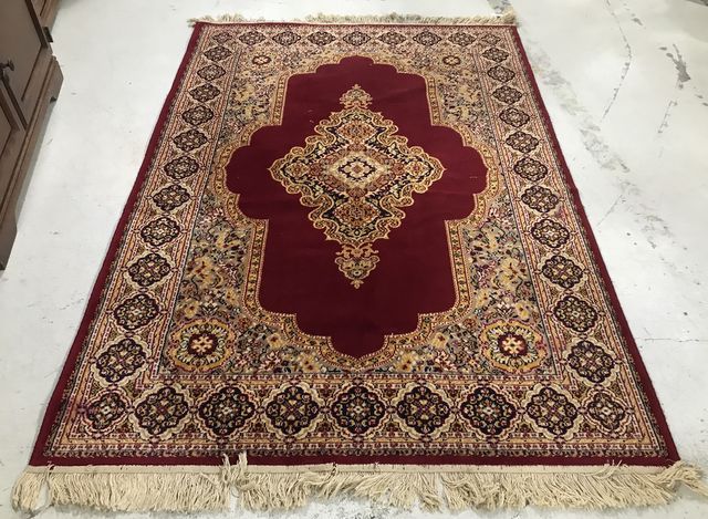 Persian Style Machine Made Red Area Rug 4'8 x 6'8, good condition. Color will seem lighter nin photograph. Persian Style Machine Made Red Area Rug 4'8 x 6'8, good condition. Color will seem lighter nin photograph.