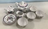 Chinese porcelain tea set, pitcher, sugar, creamer, cups and saucers. Chinese porcelain tea set, pitcher, sugar, creamer, cups and saucers.