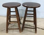 694 Pair of Vintage Oak Round Bar Stools