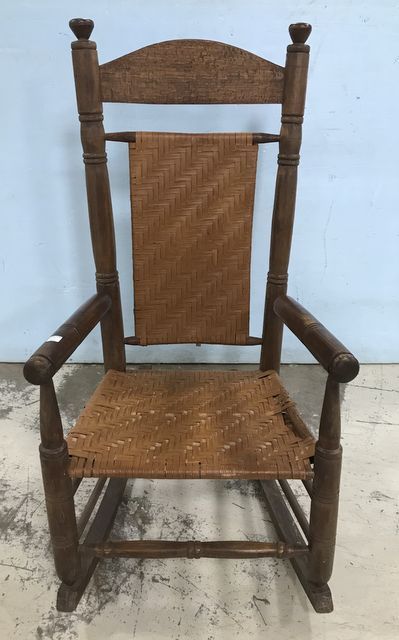 Primitive Style Oak Rocking Chairs, woven spilt oak seat and back, 43"h. Primitive Style Oak Rocking Chairs, woven spilt oak seat and back, 43"h.