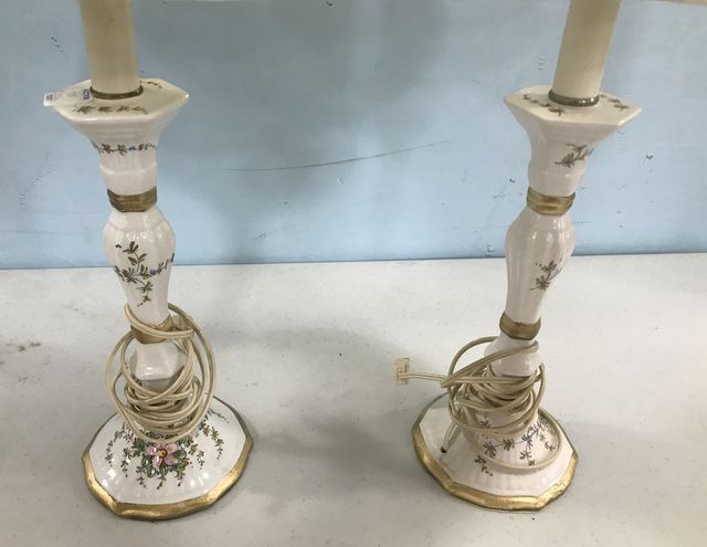 700 Pair of Hand Painted Porcelain Candle Stick Lamps