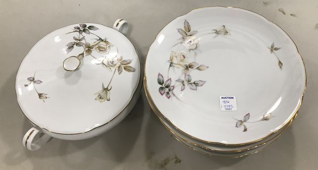 Ucagco "Oxford Rose" China, 10 dinner plates, covered tureen. Ucagco "Oxford Rose" China, 10 dinner plates, covered tureen.