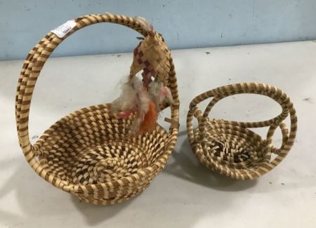 Two Hand Woven Sweet Grass Baskets, handled, good condition, 10"h. Two Hand Woven Sweet Grass Baskets, handled, good condition, 10"h.