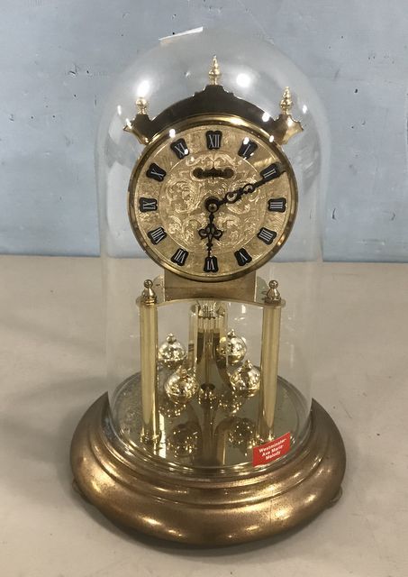 Benchmark Anniversary Dome Clock, glass dome, battery operated, 11"h. Benchmark Anniversary Dome Clock, glass dome, battery operated, 11"h.