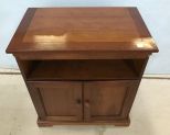 Modern Cherry Rolling TV Cabinet, top swivels, double door, open front storage, has some scratches, 31"h., 28"w., 17"d. Modern Cherry Rolling TV Cabinet, top swivels, double door, open front storage, has some scratches, 31"h., 28"w., 17"d.