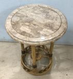 Italian Style Metal Faux Mable Pedestal Table, factory painted, with glass top, 27"h., 19"dia. Italian Style Metal Faux Mable Pedestal Table, factory painted, with glass top, 27"h., 19"dia.