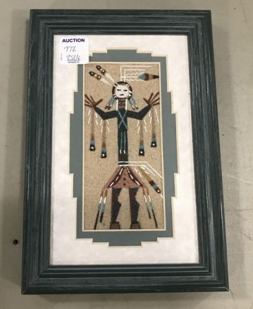 Lester Johnson Navajo Sand Painting, framed, 9"h., 6"w. Lester Johnson Navajo Sand Painting, framed, 9"h., 6"w.