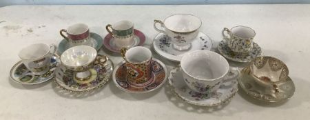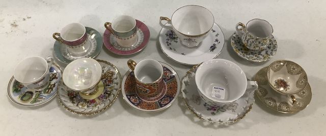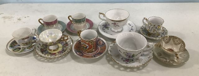 Nine Demi Tasse Porcelain sets, hand painted, collectibles. Nine Demi Tasse Porcelain sets, hand painted, collectibles.