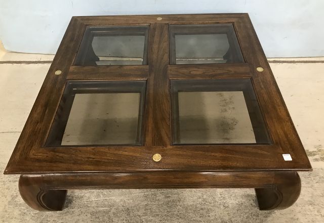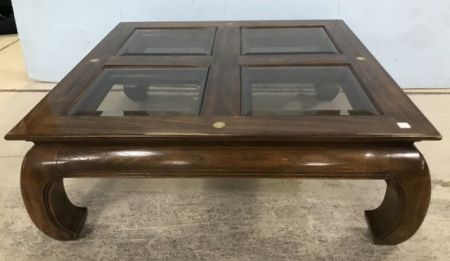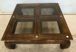 Ming Style square coffee table, beveled glass panels, cherry, 14"h., 40"w. Ming Style square coffee table, beveled glass panels, cherry, 14"h., 40"w.