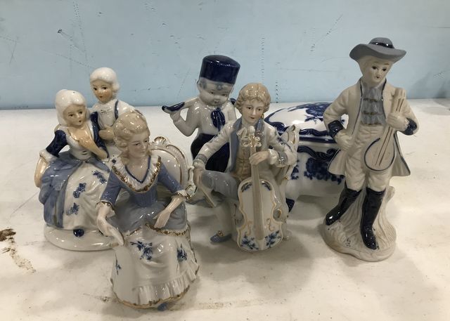895 Blue and White Figurines and Box