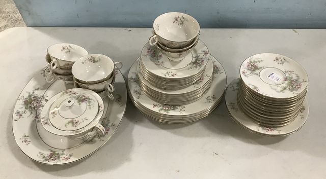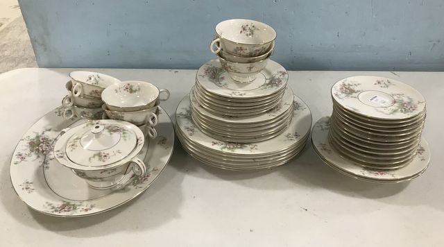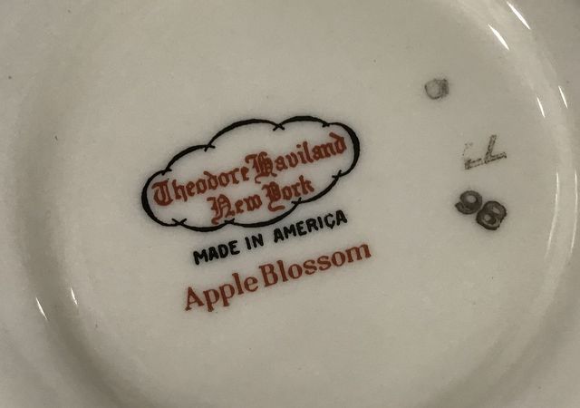 Theodore Haviland "Apple Blossom" China Set, made in USA, dinner plates, salad, dessert plates, cups, platter, bowls. Theodore Haviland "Apple Blossom" China Set, made in USA, dinner plates, salad, dessert plates, cups, platter, bowls.