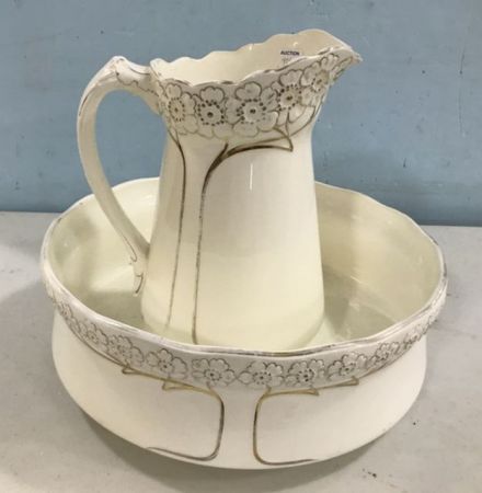 921 Vintage Porcelain Pitcher and Bowl