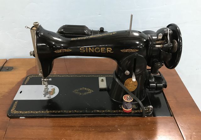 937 Mahogany Single Sewing Cabinet with Singer Sewing Machine