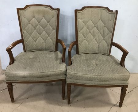 Pair of French Provincial Arm Chairs, button cushions, cherry frame, finish has wear, 40"h. Pair of French Provincial Arm Chairs, button cushions, cherry frame, finish has wear, 40"h.