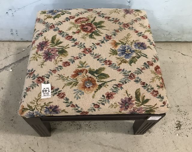 Small Upholstered Floral Cushion Stool, 8"h., 12"w. Small Upholstered Floral Cushion Stool, 8"h., 12"w.