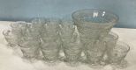Set of Pressed Punch Cups and Matching Bowl, 18 cups, bowl is 5"h., 9 1/2"dia. Set of Pressed Punch Cups and Matching Bowl, 18 cups, bowl is 5"h., 9 1/2"dia.