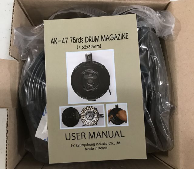 New AK 75 Round Drum Magazine, in box. New AK 75 Round Drum Magazine, in box.