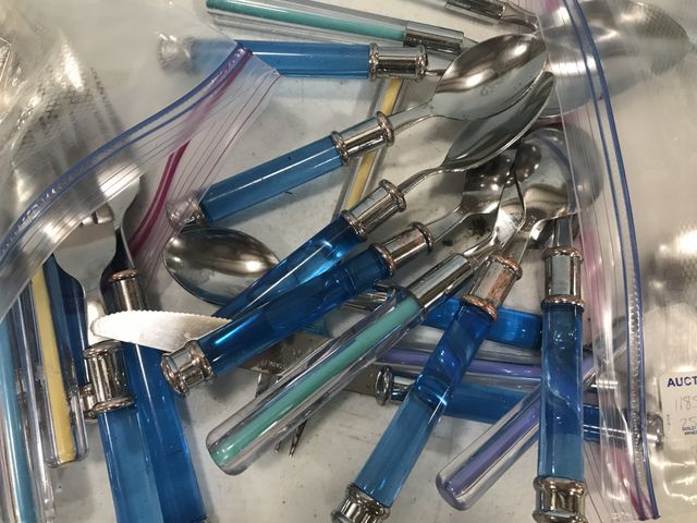 1185 Set of Blue Plastic Grip Flatware