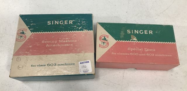 Two Boxes of Vintage Singer Sewing Machine Attachments, classes 603 machines and 600. Two Boxes of Vintage Singer Sewing Machine Attachments, classes 603 machines and 600.