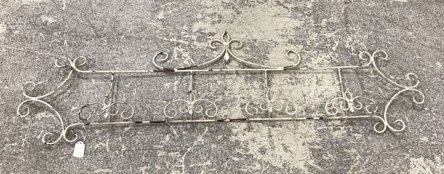White Distressed metal plate rack, four sections, 47"w. White Distressed metal plate rack, four sections, 47"w.