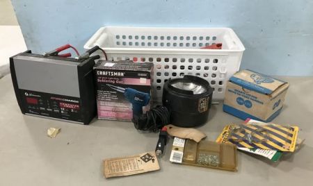 Soldering gun, spot light, speed battery charger, Acme Lite, screws, file, staple gun, hammers, etc. Soldering gun, spot light, speed battery charger, Acme Lite, screws, file, staple gun, hammers, etc.