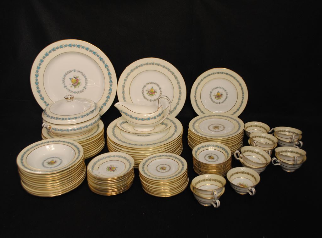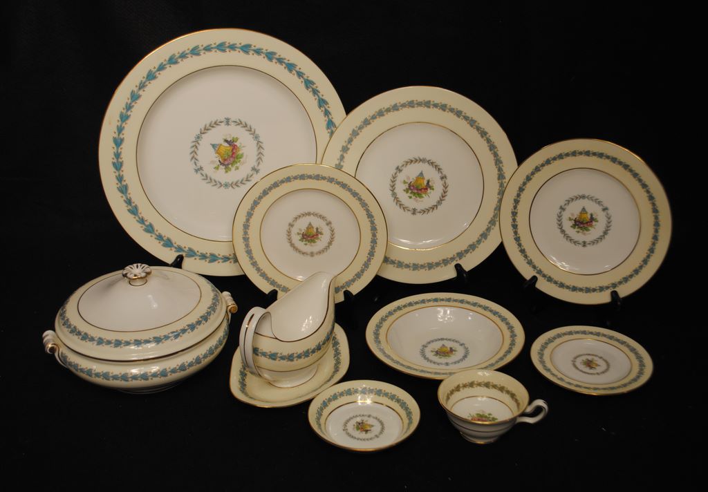 Set of Wedgewood china. Large set of "Appledore" by Wedgewood 1957-1992. Set includes: 12 dinner plates, 12 luncheon plates, 12 salad plates, 12 cups and saucers, 12 cereal bowls, 11 small fruit bowls with 11 under plates, gravy boat, 13 1/2" serving plate and covered vegetable. 85 pieces. Set of Wedgewood china. Large set of "Appledore" by Wedgewood 1957-1992. Set includes: 12 dinner plates, 12 luncheon plates, 12 salad plates, 12 cups and saucers, 12 cereal bowls, 11 small fruit bowls with 11 under plates, gravy boat, 13 1/2" serving plate and covered vegetable. 85 pieces.
