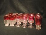 Set of 18 cranberry flash glasses. 10-5 3/8", 8-5 1/4" Set of 18 cranberry flash glasses. 10-5 3/8", 8-5 1/4"