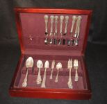 Set of sterling silver flatware "Old Master" by Towle. Set consist of 8 dinner forks, 8 salad forks, 9 teaspoons, 8 ice teaspoons, 3 serving spoons, sugar spoon and butter knife. 38 pcs. Set of sterling silver flatware "Old Master" by Towle. Set consist of 8 dinner forks, 8 salad forks, 9 teaspoons, 8 ice teaspoons, 3 serving spoons, sugar spoon and butter knife. 38 pcs.