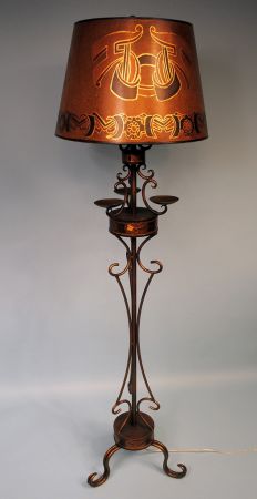 Contemporary Iron Floor lamp with decorative stenciled sections and same pattern carried out in the 16 1/2" round shade. 67 1/2"h Contemporary Iron Floor lamp with decorative stenciled sections and same pattern carried out in the 16 1/2" round shade. 67 1/2"h