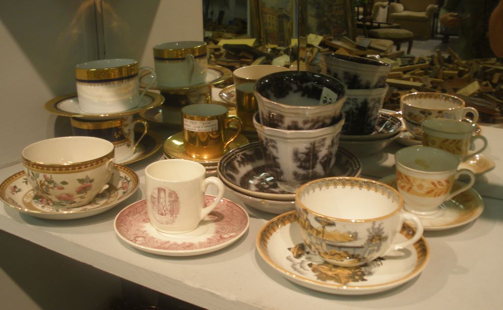 380 Group of Various Cups and Saucers in Transferware, Gold and Oriental