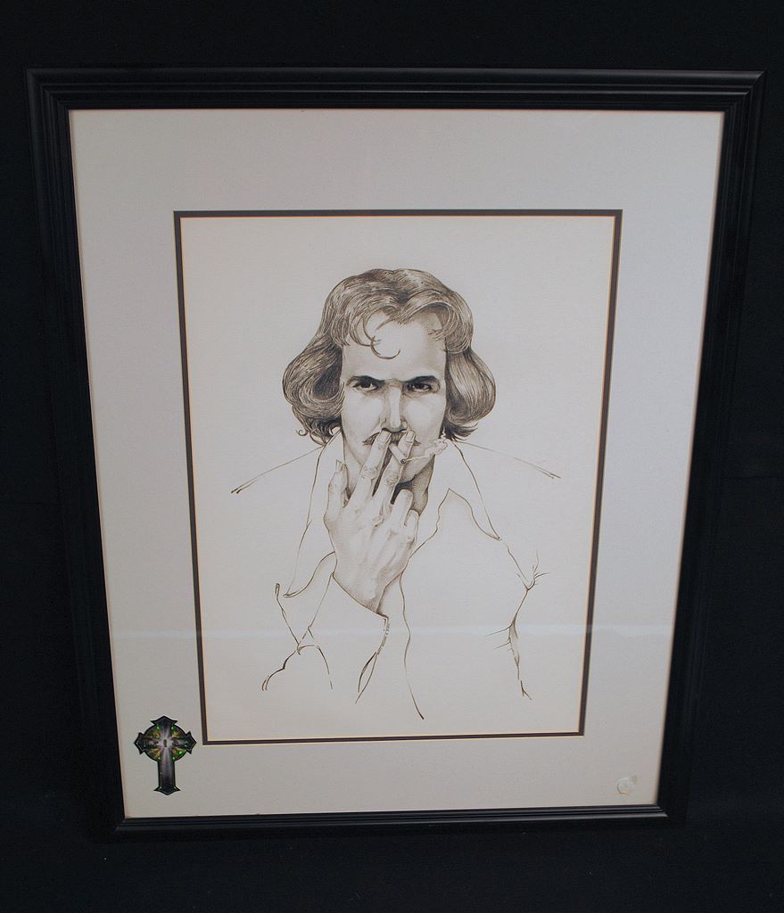 Pencil Drawing of Man Smoking done by Local Pearl Artist DeWeese, Signed and Dated on Sleeve. Kenny DeWeese II 2000. 26 1/2"w 33"h Pencil Drawing of Man Smoking done by Local Pearl Artist DeWeese, Signed and Dated on Sleeve. Kenny DeWeese II 2000. 26 1/2"w 33"h