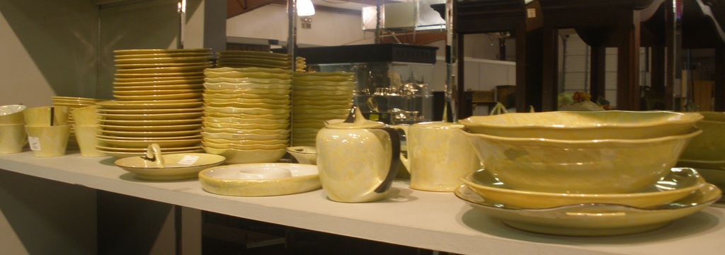 71 pcs. Yellow lusterware. Set consists of luncheon plates, salad plates, cups and saucers, bowls, sugar and creamer 71 pcs. Yellow lusterware. Set consists of luncheon plates, salad plates, cups and saucers, bowls, sugar and creamer
