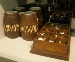 461 African Olive Wood Tumblers with Aluminum Liners, and Collection of Miniature Porcelain Animals