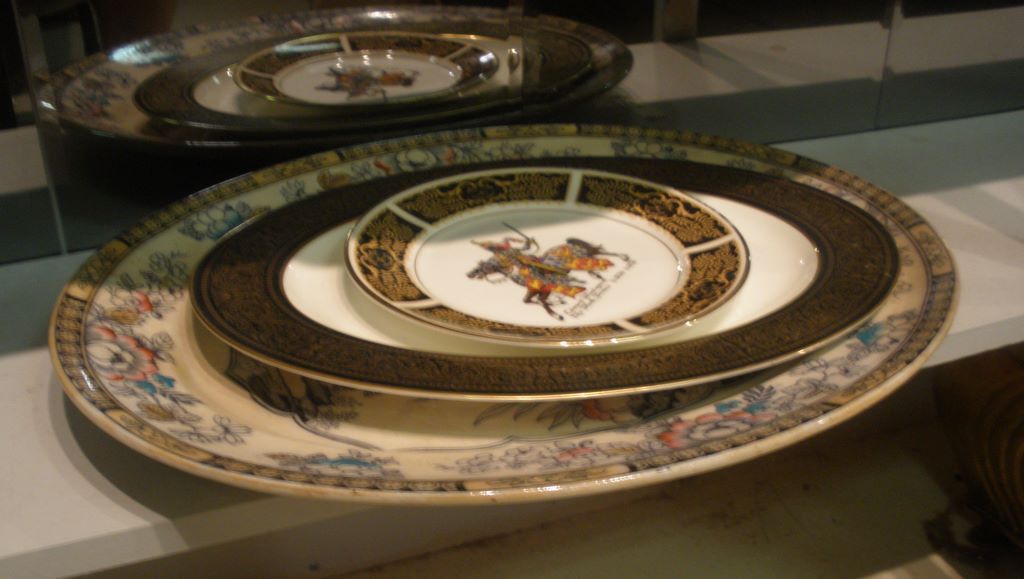 Lot consisting of large oriental style charger, bone china platter, and souvenir plate Lot consisting of large oriental style charger, bone china platter, and souvenir plate