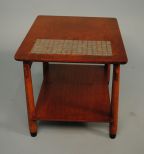 1960's Vintage Walnut (Lane) End Table with aqua small tiles in one section, lower shelf. H. 20" W. 21 1/2" D. 27" 1960's Vintage Walnut (Lane) End Table with aqua small tiles in one section, lower shelf. H. 20" W. 21 1/2" D. 27"