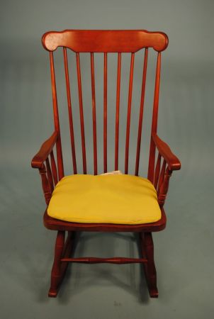 Early 20th Century Colonial style cherry rocker. H. 42", W. 22", D. 12" Early 20th Century Colonial style cherry rocker. H. 42", W. 22", D. 12"