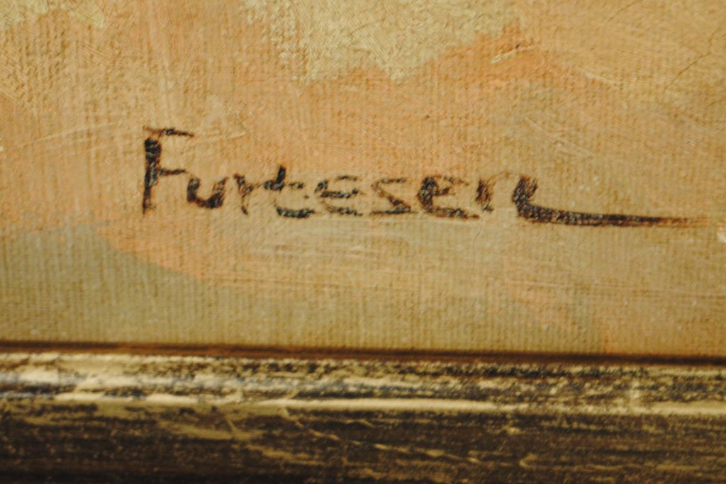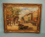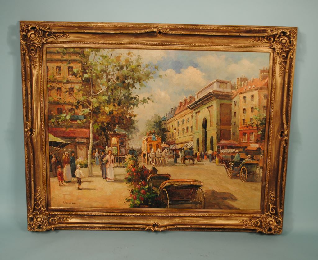 European Boulevard scene with people and carriages presented in a contemporary filtwood frame, signed lower left Furteser. H. 47", w. 57" European Boulevard scene with people and carriages presented in a contemporary filtwood frame, signed lower left Furteser. H. 47", w. 57"