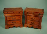 Pair Oak Contemporary Bedside Tables. Three Drawers beading around top drawer, all supported by bracket feet. H. 27 1/2" W. 28" D. 17" Pair Oak Contemporary Bedside Tables. Three Drawers beading around top drawer, all supported by bracket feet. H. 27 1/2" W. 28" D. 17"