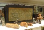 Lot consisting of carved animals and plaque Lot consisting of carved animals and plaque