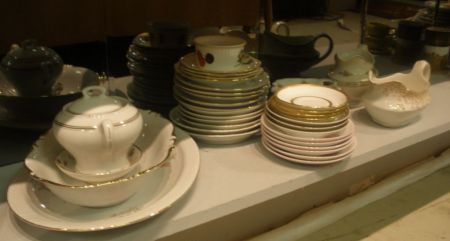 Lot consisting of collection of saucers, platter, bowl, sugar and 2 transferware creamers Lot consisting of collection of saucers, platter, bowl, sugar and 2 transferware creamers