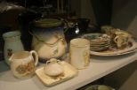 518 Oriental English Transferware Platter, Coalport cup and saucers, biscuit jar and souvenir items