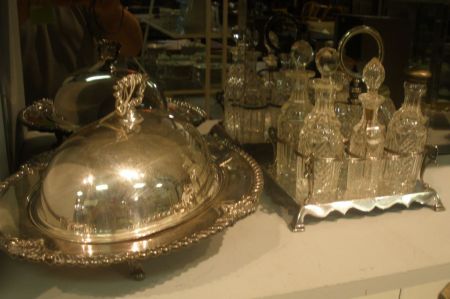 Lot includes silverplate covered vegetable, various spoons, silverplate castor set Lot includes silverplate covered vegetable, various spoons, silverplate castor set